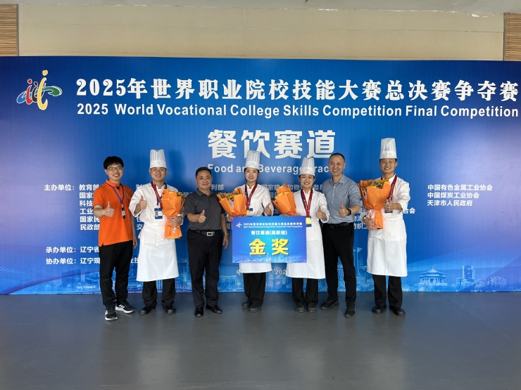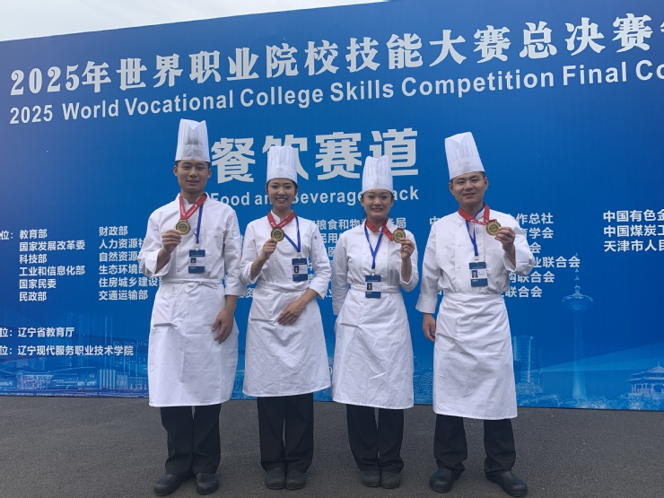 本网讯(yL23411永利官网登录 赵捷)9月8日至12日,2025年世界职业院校技能大赛争夺赛餐饮赛道高职组比赛在辽宁现代服务职业技术学院举行,学校yL23411永利官网登录学生张璐、张佳宁、杨心茹、黄旭组成的参赛团队荣获金奖,刘俊新、王庆泉老师荣获“优秀指导教师”。