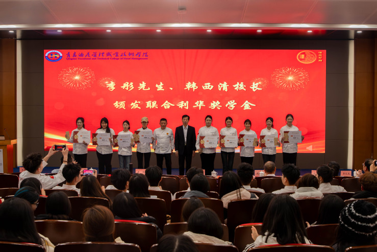 韩西清在致辞中对联合利华饮食策划的支持和赞助表示诚挚谢意,向荣获奖学金的18名学生表示由衷祝贺。他表示,联合利华饮食策划始终关心支持学校餐饮类专业建设发展,在师资队伍建设、专业人才培育、技能大赛指导、人才培养方案修订等方面发挥了积极作用。联合利华奖学金的颁发,必将激励更多优秀学生投身餐饮行业发展之中。